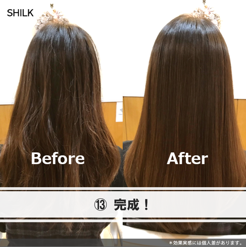 トリートメント髪質改善コースのお客様事例。SHILKでは美容室帰り後のホームケアまでサポート致します。